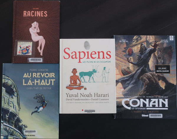 Lectures de la semaine 42 (BD) Moins de livres, mais plus épais, je m'intéresse aux romans graphiques pour changer : - Sapiens 2 : pour continuer d'enrichir ma culture de notre grande Histoire humaine - Racines : le dernier de Lou Lubie - Au revoir là-haut : un très bon roman, qui a donné lieu à un bon film, et maintenant cette BD - Conan 12 : une bonne surprise dans cette série qui n'est pas toujours qualitative Le 19/10/2025 - 11:24 par LordTRY